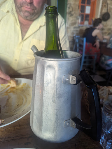 Read moreIntriguĂ©.es par ce nom de restaurant qu'on a eu du mal Ă retenir et cette devanture atypique, c'est la promesse de produits locaux et d'une petite carte (garantie fait maison) qui nous a dĂ©cidĂ©.es. Premier dĂźner jeudi soir Ă 4. On est mis Ă l'aise par ce lieux dĂ©finitivement atypique, ces noms de tables rigolos et un service aux petits soins. Sur la petite ardoise, une carte courte et des plats gourmands. Le service est rapide et ajustĂ©. On se sent chez nous. Et les plats et desserts sont incroyables. Cuissons et produits parfaits. C'est goĂ»tu, c'est gĂ©nĂ©reux, et ça ne se moque pas de nous. Les tarifs sont trĂšs raisonnables. Et une belle liste de vins et digestifs, dont certains sont faits maison, ponctuent cette belle soirĂ©e. On y retournera Ă deux le samedi suivant, et mĂȘme impression d'avoir passĂ© une belle soirĂ©e avec des plats succulents et une ambiance chaleureuse qui donne un goĂ»t de "reviens-y" ! Bravo vous, ça relĂšve le niveau des restaurant Ă touristes du coin. A...