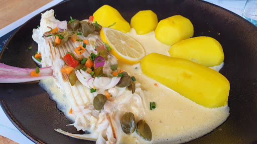 Along the boulevard facing the sea, it is mostly tourist traps with bad to mediocre food. This is an exception!! Similar in price to the rest but the quality is superior, if you are looking for seafood. A lot of people here have fruits de mer, which looked fab. We had stingray and cod, both really good. The sauce was yum on both. The chorizo sauce with the cod was mostly just a cream sauce though, didn't taste much of chorizo but probably so it doesn't overpower the fish. Bread here is slightly hard but I don't mind. Staff wasn't as attentive as I would like but they were friendly...