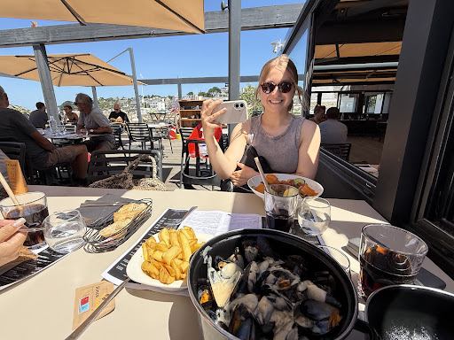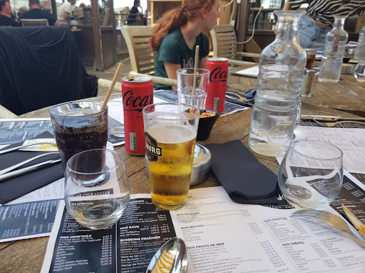 Read moreQuand on confond vitesse et précipitation... Accueil plutot agréable dans le rush du mois d'Aout, équipe dynamique et sympathique. Placement rapide, commande prise en un clin d'oeil, le tout dans la bonne humeur, impressionnant d'éfficacité ! Coté cuisine, un peu plus de soucis, un onglet servi froid dedans et carbonisé dehors avec quelques frites mc cain à cuisson rapide et une sauce bizarre brune où flottait quelques rondelles d'oignon ? Pour l'autre convive, des moules au curry sans grand interet, surprenant de préciser que les frites ne sont pas comprises, à ce prix.... au final pas de regrets. Ensuite un café liégeois et 2 cafés... Les cafés sont arrivés les premiers, le café liegeois a du attendre qu'une coupe propre et chaude sorte du lave vaisselle ce qui a conduit a une glace fondue dessous et froide dessus. Encaissement rapide avec un sourire et un peiti mot sympa. Heureusement le sourire de l'équipe rattrape tout ça, mais 50 € à 2 pour deux plats,un dessert, 2 cafés et une bouteille d'eau... un peu dommage... de rester sur sa faim. A refaire dans un moment plus...