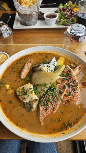 I ordered Bouillabaisse No one writes Bouillabaisse reveiw so. Soup was blended, very average. Good but just good enough. Fish was great! No bone, soft very good. i don't like fennel personally so just left. Idk the veges name similar to carrot, I don't like that either 😂😂 Massive size but just soup wasn't that good. Very watery, feel like they cook fish and soup separately 😂idk actually the recipe but....yea Not the best dish in this place