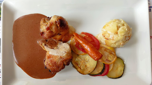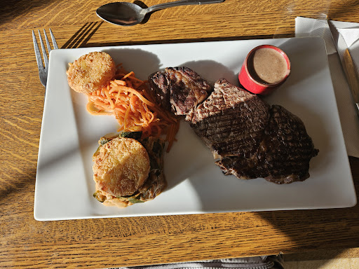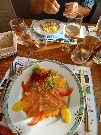Read moreAu menu, salade de saumon fumé (et on voyait bien le saumon !) et sorbet d’un côté, et travers de porc marinés et tarte rhubarbe de l’autre. Un vrai délice, tout simplement parce que fait maison ! Le travers de porc était fondant et délicieux et même la pâte sablée et légère de la tarte était maison, ce qui est de plus en plus rare. Pour nous un vrai plaisir de voir qu’il existe encore des vrais restaurants ! Un mot sur la patronne, gentille et professionnelle : elle a son humour bien à elle, alors marchez dans son jeu et vous aurez en plus des...