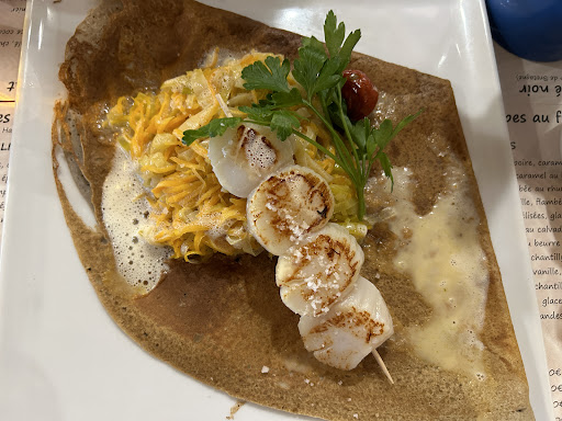 Read moreDe séjour en Bretagne, nous recherchions un petit restaurant. Nous sommes donc tombé sur celui ci. Le serveur est très agréable, souriant malgré le masque, de bon conseil et ne ment pas sur l'origine des produits en cuisine ( plat fait maison, de saison et de grande qualité) Nous y avons mangé le midi et le soir ! C'était très bon notamment leur crêpe bretonne aux noix de saint jacques ! Excellentes !! Malgré un salle pleine le midi et le soir, le restaurant n'est pas bruyant (même si des enfants étaient présents en salle) et la musique n'est pas trop forte. Un chef cuisinier taquin avec son serveur, un serveur agréable avec lequel nous avons pu échanger sans avoir l'impression de déranger bien au contraire, accueillant chaleureux et famillial !! Très bonne ambiance !! Merci à toute l'équipe et à très vite nous l'espérons, bonne continuation. Nous recommandons...