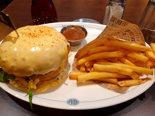 La nourriture Ă©tait vraiment pas mal ! La planche apĂ©ritive (Cheesy platter) Ă©tait bonne, on peut mĂȘme souligner qu'en gĂ©nĂ©ral, sur ce type d'aliment on peine Ă trouver ce qu'il y a dedans. Ici pas du tout. Nous ne prenons jamais de Burger en restaurant habituellement car trop déçus. Nous avons bien fait de changer notre habitude. Les burgers avaient vraiment du goĂ»t, le pain et la viande Ă©taient vraiment bons. Ce n'Ă©tait pas un simple cumul d'aliments dans un pain, c'Ă©tait un plat Ă part entiĂšre. On sentait la qualitĂ© des produits qui semble avoir Ă©tĂ© montĂ©e d'un cran. Le dessert "Let it nut" a Ă©tĂ© perturbant tant on sentait vraiment le goĂ»t de la noix dans la glace. Un dĂ©lice !