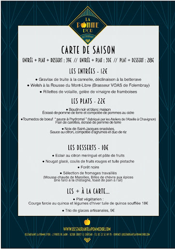 Read moreJ'ai fait appel aux services de LA POMME D'OR dans le cadre d'un évènement professionnel. Blandine et ses équipes sont vraiment au top! Nous avons déjeuné au restaurant mais les équipes sont aussi venues cuisiner pour nous sur notre lieu d'hébergement, la qualité de la prestation était vraiment au rendez-vous!! Les plats sont faits maison avec des produits locaux, le service est impeccable, Blandine se met en quatre pour accéder à chacune de vos demandes et elle y arrive!! (même avec les clientes les plus exigeantes 😉) Je tiens à remercier particulièrement Sylvia au restaurant mais aussi, les deux personnes qui sont venues assurer le service à la ferme pour leur accueil et leur professionnalisme. Vous avez très largement contribué au succès de notre petit séminaire! Le restaurant est aussi très joli et chaleureux, le lieu est empreint d'histoire et Sylvia, employée depuis 27 ans au sein de l'établissement, se fait un plaisir de vous en dire quelques mots...Très belle expérience, je...
