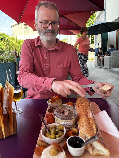A midi, après la visite du village et du château, j'ai bien aimé déjeuner à l'épicerie La Virginie à Vogüé en Ardèche qui fait office de café bar et restaurant. La particularité c'est qu'on y fait soit même son menu en achetant les produits dans l'épicerie, charcuterie, fromage et boisson... Tout y est excellent et on y passe un bon moment. La terrasse extérieure est tres sympa. J'y suis allé en juin 2025 et je peux avec les informations obtenues, vous faire une présentation.