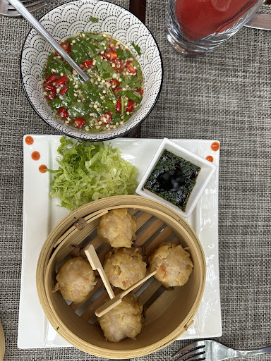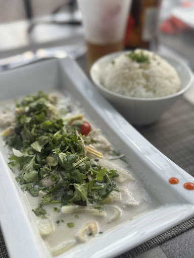 We ordered Thai food: crab dumplings, grilled pork, crispy pork, and chicken tom kha. The taste was very good. The service was friendly. The atmosphere was like eating under a tree. Every set meal came with a side dish and rice. We didn't make a reservation, but luckily there were two seats. However, we recommended you should book in advance. (Price 30-35 € per person)