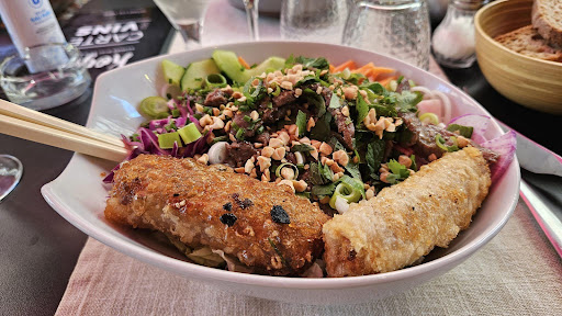 Read moreNous avons passé un très bon moment avec une serveuse très souriante et avenante malgré le monde et le fait qu elle soit seule en salle. C’est propre et bien décoré mais malheureusement nous avons du mal tomber. Nous avons pris le bobun et nous l’avons tout deux trouvé moyen, la sauce était trop liquide et trop salée, ça manquait de pep’s et les nouilles étaient vraiment particulière ( nous mangeons très souvent asiat) et la viande était en très petite quantité et très salée et le dessert était bon mais la crème passion était trop prise et était très compacte mais le goût était bon avec la chantilly coco et le citron. C’est dommage Mais nous reviendrons les gens à côté avait pris un plat différent et se...
