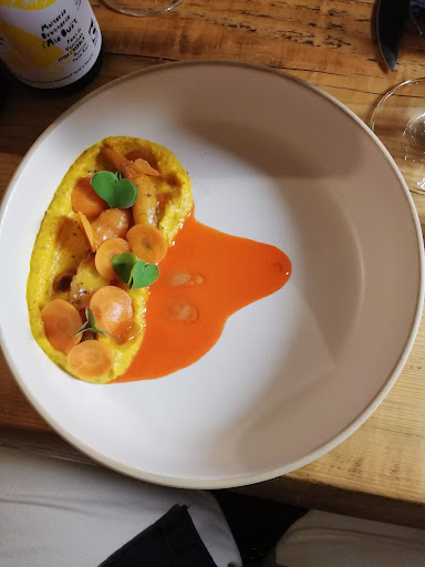 Overall a pleasant culinary experience, though I think the 5 star reviews raise the expectations too high. You have to take the menu: amuse bouche, starter, main dish, with the option of dessert (30-35 euros). There are 2 choices for each course (3 for dessert), there was no vegetarian option for the main dish (chicken or trout). There is a limited number of tables they take on, so best reserve beforehand. It's a slow food restaurant: there is a substantial waiting time between starter and main dish, be prepared to be at the restaurant for at least 2 hours total. The ambiance is very pleasant and calm, it feels like a little safe haven. As for the food, it is very refined and pure. The starters were an absolute standout: simply exquisite! 👌 The main dish was a bit of a letdown especially after the long wait: the chicken filet was completely unseasoned, and the vegetables were also lacking seasoning a bit. The bread was surprisingly dry, not to say stale. Still, we did enjoy a pleasant evening here and we are excited to see how the restaurant will grow - we will definitely return next time we...