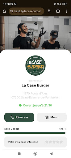 Read moreUne adresse surprenante! Lorsque que j’ai aperçu ce petit établissement pour la première fois, j’étais loin de me douter, de toutes les merveilles qu’il pouvait renfermé! Effectivement, ne vous attendez pas à déguster (car ici on peut bien parler de dégustation) un simple hamburger. Ici on parle de produits du terroir, de frite découpé à la main et pain fait maison à la lueur de l’aurore par un cuisiner passionnée. De plus l’ambiance et la décoration tropicale subtilement imagée par la partonne Emilie (qui fut extrêmement accueillante) vous donne un cadre doux et chaleureux qui vous fera voyager le temps de passé un moment en agréable compagnie devant un repas haut de gamme. C’est pour conclure une véritable réussite pour la Case Burger! Et, bien que le prix des boissons reste discutable, j’invite chaque personne qui passera devant cet endroit à venir y goûter ses nombreuses merveilles ou à les prendre à emporter...