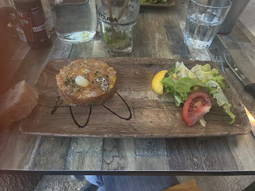 Read moreNous aurions dû nous méfier à la vue de la carte ... comme certains l'ont déjà dit dans les commentaires, ce restaurant a une carte beaucoup trop variée pour que tous les plats soient frais et maîtrisés. Nous avons commandé des burgers, la serveuse a semblée surprise quand nous lui avons spécifié la cuisson, un bleu et un saignant, et ils sont arrivés tous les deux à point ... Le burger en lui même n'avait pas beaucoup d'intérêt, la salade recouverte de vinaigrette industrielle, heureusement, les frites étaient bonnes et bien dosées niveau quantité. Au moins 3 ou 4 serveurs/euses se sont occupés de nous, c'est très gentil mais ça montre la désorganisation de cet établissement. Dernier point mais pas des moindres, L'HYGIÈNE : une des personnes travaillant dans le restaurant est venue s'essuyer les mains sur le torchon recouvrant le gros bol contenant le pain pré-coupé pour les clients à l'intérieur des mouches partout. On est en pleine nature, mais quand même ... deux chiens (très gentils) qui se baladent un peu partout, intérieur comme extérieur, pas sur que ça soit top niveau hygiène, mais aussi pour les clients n'appréciant pas nos amis les chiens ... les toilettes ... ma compagne est tombée sur des excréments sur la table à langer ...