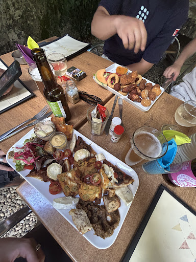 we Had veggie and fish Tapas plates, "plats Grandes". I saw the pictures of those (1 year old) and there was some similarity but not more and I was disappointed. the wakame , the salmon and the falafel on the fish tapa were good, but the rest average and altogether very little. it was more resembling the "small" version of the plates. the veggie one was very simple apart from the interesting mini muffins. am I over expecting, when I say that you can expect a full meal for a 18€ "big plate"? I had the impression that it was because of Sunday ( they close in preseason for Monday to Wednesday) and that was what was left. the beer was good and served cold. the male waiter (boss?) was friendly, but we were overall ...