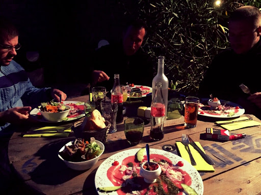 Une de nos connaissances nous avait conseillé ce Restaurant au cadre verdoyant car on mange en terrasse au milieu des oliviers. Il y a une possibilité de manger à l'intérieur en cas d'incertitude météo. Durant notre séjour nous y sommes allé à plusieurs reprises. Toutes les fois le personnel a été agréable, sympathique, souriant et pas avare d'interaction avec le client. Nous remercions d'ailleurs très chaleureusement Sandrine (si j'ai bien compris son prénom lorsqu'elle a été appelée... 😊 et pour qu'elle puisse nous reconnaître, nous sommes les 5 petits belges avec le petit garçon qui racontait toute sa vie 🤣🤣) qui nous a donné de bons conseils balade dans la région. Les plats sont généreux et excellents. Leur apéritif (vin blanc au basilic) un delice ! Si vous passez dans le coin allez-y les yeux fermés. Par contre, privilégiez un repas le soir car le midi il n'est pas possible de choisir à la carte. Vous avez le choix entre différentes salades repas, des entrées ou le plat du jour (je précise malgré tout que c'était délicieux!!) Ce détail est le seul bémol que nous avons relevé car rien n'est indiqué en ce sens...