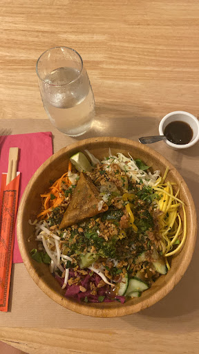I never feel compelled to write reviews, good or bad but I am completely perplexed about the rave reviews here. We are big fans and connaisseurs of Vietnamese food and came here after reading the great reviews. We loved everything about this restaurant, the welcome, the service, the decoration, the open kitchen and were very excited to eat here. We were offered two menus, one with more traditional choices and the second one a set menu (formule) with 2 or 3 choices per course which represented more of an Asian Fusion experience. Two of us chose from the traditional and myself from the "formule" The spring rolls (nems) were very good and the fish in the mains were perfectly cooked. However, the Thai beef and the lacquered chicken salads lacked flavour and mainly consisted of lettuce and very little else. Even the extra sauce that was offered was bland. I also regretted the "café gourmand" mix of cakes ( "cheesecake", "clafouti", "panacotta") which were all dry, dense and bland. I'm sorry, but the "Pad Thai" in particular was seriously disappointing. Everything was so perfect in the presentation but the traditional flavours were missing in everything that we ate. Address the seasoning and this restaurant could be a 5 star...