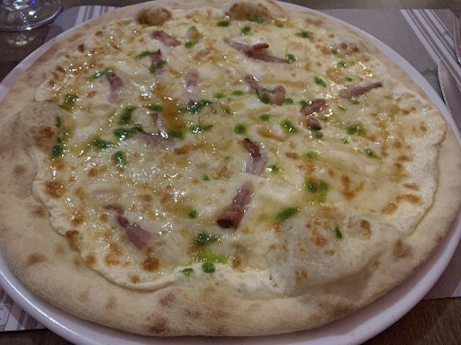 Read moreUne très bonne expérience. On voulait y manger après avoir vu sur Google qu'ils pouvaient proposer des choix végétariens (voire végans). Appelé un mercredi, ils n'avaient plus de place pour le soir même, mais on a pu réserver pour le vendredi 2 jours plus tard avant notre départ de la région. Belle surprise : quand j'ai demandé au monsieur qui a pris notre réservation s'il était possible de faire un plat végé, il m'a répondu "végétarien facilement, végétalien c'est plus compliqué mais une pizza sans fromage serait tout à fait possible." J'ai l'habitude de poser cette question aux restaurateurs et il n'est pas souvent qu'ils connaissent le terme "végétalien" (ou même qu'ils fassent la différence) donc autant vous dire que j'étais déjà impressionnée ! Quant à l'expérience à table, elle était toute aussi bonne. Nous avons eu un serveur (à priori le seul pour les 32 couverts qu'on a comptés dehors) qui était souriant, discret, aimable et compétent. Le seul hic c'est qu'il était tout seul, le pauvre, et il se donnait à fond mais malgré lui, on a quand même attendu un petit moment après avoir fini le plat pendant qu'il s'occupait des autres, même si ce n'était en rien de sa faute. On a quand même passé un bon moment à table dans un cadre très agréable sur la petite terrasse derrière le restaurant. Enfin, pour la cuisine : ça se sent absolument que c'est du fait maison. Mes tagliatelles Petit Jardin étaient succulentes et bien garnies de plein de légumes, avec une sauce ultra délicieuse par dessus : j'ai liché l'assiette avec du pain ! 😂 Quant à l'assiette de mon copain, le faux filet était un peu plus bleu que saignant comme il aurait aimé, mais ça ne l'a pas empêché de le manger et de se régaler quand même. J'ai piqué quelques-unes de ses frites au passage, et là aussi, elles étaient sans aucun doute faites maison (en plus d'être chaudes et croustillantes). Après avoir dîné à quelques autres restos dans la région pendant nos vacances, on a fait l'unanimité : niveau service, niveau gustatif et niveau rapport qualité/prix, c'était le meilleur pour la fin pour nous ! Merci de nous avoir régalés avant notre retour vers la vraie vie en fin...