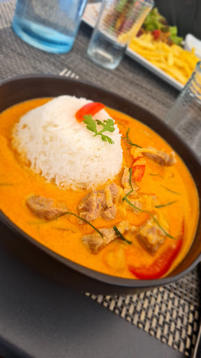 Avant toute chose bravo à la cuisinière pour le curry panang, étant fans de cuisine thaïlandaise, et ayant déjà voyagé 3fois la bas, il était excellent ! Et je ne doute pas que toutes les autres spécialités thai le sont aussi, et c'est là dessus qu'il faut vous concentrer car c'est un créneau a prendre dans cette petite ville en perdition. Pourquoi les burgers, il doit il y avoir autant de burgers que de restaurants a Aubenas, le truc à la mode, pour les touristes... bientôt on va tous ressembler aux américains 🤠 Le lieu est sympa. Par contre niveau organisation...🥴 Service long, humour douteux, vin rouge chaud, pas de vins ardéchois a part au pichet, quand on vend une bière ardéchoise de qualité (brasserie des rieux) pourquoi ne pas avoir un vin local, ce n'est pas ce qui manque, la qualité est là, et a des prix convenables, Dommage de perdre des étoiles sur des choses aussi simples à corriger. Notre avis reste a confirmer, et nous y retournerons pour les plats thai... en espérant qu'après cet avis nous serons bien reçus et servira à ameliorer ces...