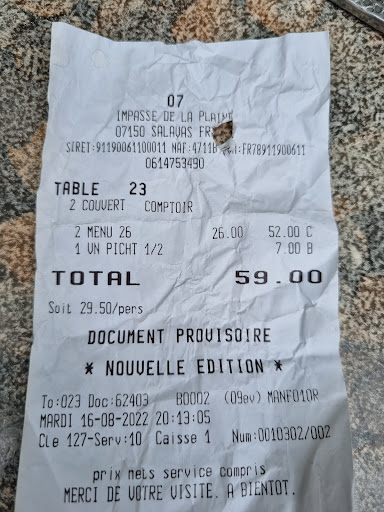 Read moreNous sommes allé le 09 08 2024 à cinq nous restaurer comme chaque année...quelle déception aux niveaux cuisine plus rien à voir avec les année précédentes.....nous savions que le gérant et cuissinier avait. changer mais nous pensions pas que la cuisine aussi aurait changer. Entrecôtes rempli de gras et nerveuse..la sauce poivre vert était de l' eau aucun goût et le pire les frite archie cuite.marron et molle horrible.....dessert RAS......et de plus malgré le manque de qualité la facture salé. Pas de carte de choix à table méfier vous de la facture.boisson rosé RAS.APERO RAS.... nous y allons normalement plusieurs fois dans le mois mais cette année à fuir..je suis même surpris des commentaires positif car ce n' est pas possible ...allez manger leurs frites et le...