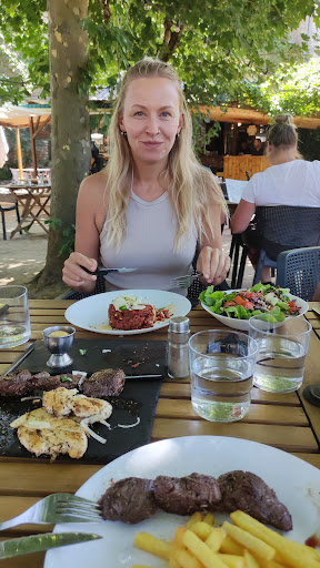 Although the food was good, the experience was terrible! The menue says you pay 15 euros for 1 chicken skewers that comes with fries and salad, and 18 euros for 2 skewers. We were 4 people so we ordered 2 x 18 euros menues so we can share. They were served with x1 plate of fries and salad to share between 4 people. When we had to pay, we were told we need to pay 4 x 15 euros menues as we eate between 4 people wich is mind blowing. Wr had a 30 min conversation with the staff whuch thought is normal to...