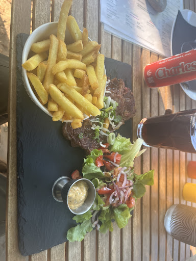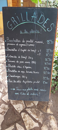 Read moreLe lieu est très joli, juste en bord de rivière, sympa après la baignade. Terrasse ombragée très mignonne type guinguette, super sympa, avec mini-mare à grenouilles ! Le personnel est très agréable. L'apéro proposé est simple mais bien, avec bières et jus de fruits locaux . Le seul hic...c'est la carte...que de la viande, pourquoi pas, mais en plein été pas de salade composée...dommage...la seule offre sans viande (qui est sans doute bien, mais à défaut de l'avoir goûtée je ne me prononce pas), sans viande donc, c'est fallafels...à éviter ! Industriels, pas terribles et trop cuits ! Donc le prix à la carte est un peu élevé ... Les sauces sont correctes sans plus ...la salade et les frites servies avec sont basiques. On a donc évité le dessert ...petit conseil, proposez d'autres fallafels, maison, ou tout prêts mais alors changez de fournisseur...ou proposez une salade mixte sans viande, ou une poêlée de légumes, ou un poisson type fish and chips, c'est facile à préparer et ce serait vraiment mieux ! Et désolée mais les toilettes mériteraient un coup de jeune...et/ou de propre ... Dommage car le lieu et le...