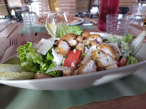 Lorsque notre commande est arrivée, nous avons demandé s’il était également possible de manger. C’est là qu’on nous a expliqué qu’il y avait une distinction : les tables de droite pour boire un verre, celles de gauche pour manger. Peu après, le serveur est revenu nous dire que sa responsable lui avait précisé qu’il n’était pas possible de manger en extérieur, uniquement à l’intérieur. Une règle que nous avons trouvée compliquée et peu accueillante, mais nous avons malgré tout décidé de rester pour dîner.