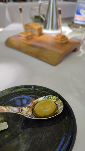 Read moreLovely outdoor setting with well-spaced tables under the trees. We had the Inspiration menu at 86 Euros and were not disappointed. The food is beautifully presented with delicate flavours. Magnificent wine list with many verticals of Chave, Clape, Rayas etc. and a friendly and professional staff doing there best to translate ingredients into English. Only criticism is that the menu is not clear re supplements and additional costs over the fixed...