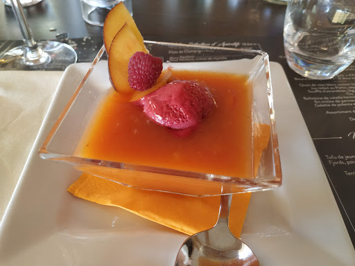 Read moreA notre arrivée, nous avons été accueilli avec ma compagne et ma belle-fille de manière chaleureuse. Le restaurant présente bien et il y a un parking situé juste à côté. Le personnel y est très sympathique, serviable et efficient dans la réponse aux diverses demandes. Par ailleurs, le fait que le lieu semble tenu par une famille, ajoute un supplément d'âme non-négligeable. En ce qui concerne la cuisine, y sont offerts petits mets et amuse-bouche très appréciés. Pour l'entrée, le céviche y était très bon, de même que la soupe de petits pois pris par ma compagne. Nos côtes de veau était juste SUBLIME ! Une belle pièce qui occupe la place centrale du plat accompagné d'une purée et ses garnitures très goûteuses et bien travaillées en cuisine. Par ailleurs, le dessert ainsi que les vins locaux ouverts ont su conquir nos palais. Pour ma part, je recommande vivement ce restaurant si vous venez faire un séjour en Ardèche ou même si vous êtes de passage ! Grand bravo et MERCI aux gérant(e)s pour leur accueil ainsi que...