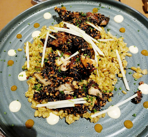 I started with the panna cotta with green peas—delicious and ethereal. The main course was a risotto with peas and saffron, topped with a delightful pesto. For dessert, I had a matcha tiramisu with strawberries and chocolate—perfectly balanced and not too sweet, complementing the light flavors of the previous...