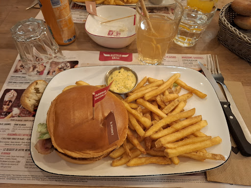Un véritable succès. Après avoir participer aux portes ouvertes de l'Estaca, nous avions grand faim. C'était la toute première fois que nous poussions les portes d'un restaurant Buffalo Grill et ce fut celui de Laval. Le restaurant est d'une grande propreté et l'accueil est irréprochable malgré une salle comble ce samedi midi. La prise de commande est rapide, ainsi que le service des plats. La seule petite chose à améliorer (que nous n'avons pas souhaité relevée ce jour), c'est la cuisson du steak haché des burgers. En effet nous avions précisé que nous les souhaitions saignants mais il s'avère qu'il ne l'étaient pas (ou plus) lorsqu'ils nous ont été servis,... (Cette remarque est à prendre de manière constructive svp). Une spéciale dédicace et même une médaille à notre serveuse, très avenante, sérieuse, souriante et qui était totalement incollable sur l'ensemble de la carte, nous avons nommé Clara. Bravo à vous Madame de nous avoir servi votre sourire et votre bonne humeur en plus de notre repas. Cela n'a pas de prix. Etant Nantais, nous ne pouvons pas dire comme comme nous le faisons d'habitude : "promis nous reviendrons", mais nous pouvons par contre conseiller à tous les Lavallois de s'arrêter une fois dans leur vie déjeuner ou dîner au sein de ce Buffalo Grill. Vous ne serez absolument pas déçus. Bonne continuation à toutes et à tous. La...