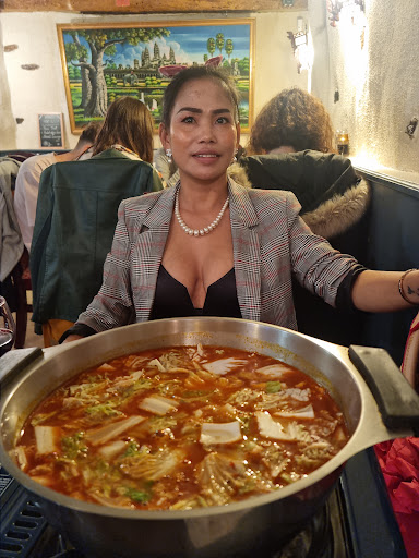 Après la déception de mon premier repas en novembre 2022, deuxième passage pour tester un plat emblématique du Cambodge : l'amok poisson. J'ouvre le repas avec des dim sum qui, logiquement, ne devraient pas me laisser de mauvaise surprise car ils ne sont pas faits maison. Raté ! Une pâté épaisse, une farce insipide. L'amok est une énorme déception tant aux niveaux des saveurs (absentes) que de la texture. Habituée des cuisines thaï, lao et cambodgienne, j'étais optimiste lors du changement de propriétaire. Au final, c'est une grosse déception. Le seul point positif est l'accueil de la patronne. Le rapport qualité / prix n'y est vraiment pas, et à plus de 37 € pour une personne, il n'y a que l'addition...