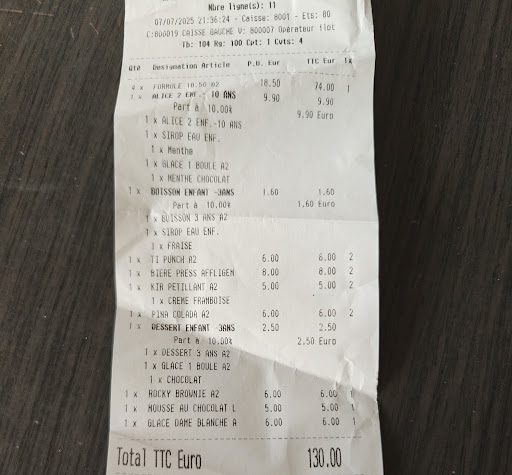 Le serveur a été génial il a rigoler avec les enfants et très polis. On les a pas traiter comme des "enfants" mais vraiment comme des humains avec le choix directement proposer a eux ils se sont donc senti "grand" On es même venu vérifier que ma fille a bien eu un burger vegetarien et demandé son avis Du haut de ses 5ans cela la toucher. Les prix sont correct car vraiment beaucoup de choix. Tres bon et produit de qualité Vraiment merci au serveur très pro Menu enfants avec plusieurs boisson au choix entree et plat au choix comme les adultes et plusieurs choix de desserts C'est un restaurant où pour une fois les enfants...