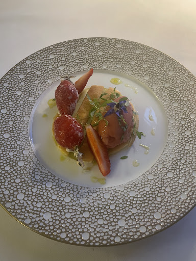 Read moreNous y sommes revenu après avoir été enchanté par les mets du chef précédant Mr Vannier. Le cadre y est raffiné, le service exemplaire et le déroulé des plats agrémente avec précision l'expérience. A présent, la qualité de la cuisine n'est plus à la hauteur de ce qui nous avait ravi par le passé. Le cannelloni tourteau-avocat aurait pu devenir un incontournable sans le choix de pièces d'avocat noircies et filandreuses. Le plat de viande manquait cruellement de décoration, en témoignent les trois asperges alignées dans l'assiette. Pour autant, les mignardises, les snackés de saint jacques ainsi que les desserts honorent encore le standing de...