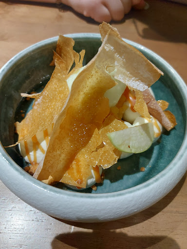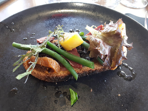 Read moreExtrêmement déçue par le service, la cuisine, l'ambiance. Loin de la hauteur du prix pratiqué Ce qui était bon : le verre de vin blanc Cheverny, la cuisson du poisson parfaite ainsi que son assaisonnement et les tranches de chorizo, le pâté de tête de veau, la boule de glace yaourt et les cafés. Par contre l'entrée maquereau moutarde immangeable ainsi que l'accompagnement de la tête de veau (toast au goût de poisson et la sauce verte posée dessus) Un risotto peu appétissant avec le poisson. En dessert des nectarines "rôties" très dures et servies sans couteau. Énormément de chantilly et de pseudo sauces que nous avons du mal à identifier dans les assiettes. Un service sans sourire ni explications, nous semblions déranger. Obligée de réclamer le pain, etc. Une chaleur étouffante, pas de ventilateurs pour la clientèle alors que la note est très salée (qui ne comprend pas le confort). Très très déçues pour 84€ à deux (2 menus complets déjeuner, 1 verre de vin, 1 eau plate, 2 cafés) Nous ne...
