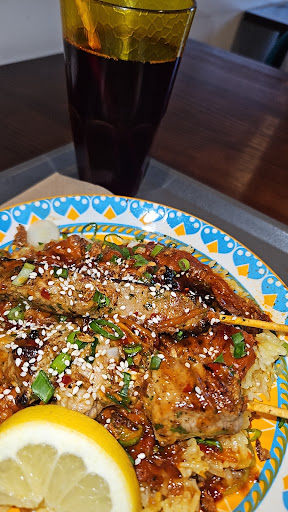 Read moreQuelle belle découverte !!!!! Absolument délicieux !!!! Tout est merveilleusement bien agrémenter ! Et ici tout est bien mariné !!! Il faut aimer la cuisine qui a du goût ! On a goûté le riz, les.nouilles, et le quinoa. Je suis jalouse de leur quinoa ! Tout le monde s'est régalé ! Quant aux brochettes poulet, boeuf, et légumes c'est un zero faute ! Je doutais de la brochette de legumes lorsque j'ai vu de quels legumes il s'agissait... et surprise ! Fondant, marinés : délicieux ! Voilà cela faisait longtemps que je n'avais pas autant été enthousiaste d'un dîner ! Dommage que nous ne soyons pas...