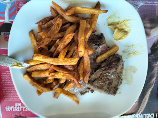 Je suis très perplexe sur la cuisine, nous étions plusieurs, en entrées la moitié a pris une assiette de charcuteries très copieuse, deux autres la quiche lorraine et moi celle aux poireaux, très bonnes sauf que les parts étaient plutôt minuscules en comparaison mais bon..mais su.la mienne était presque froide. Pour les plats steaks saignants frites et saumon aux épinards, steaks archi cuits je pense qu ils sortaient du congélateur,quant aux frites très très déçue,elles étaient bien maison mais molles et pas dorées du tout, le saumon très bon mais pour moi c est du surgelé,ils avaient deux plats du jour le rôti de porc et le sauté de dinde, pourquoi ne pas se limiter à ses deux plats maison plutôt ?pas de commentaires sur le fromage et dessert , On va dire que pour 15€ entrée plat fromage et dessert c est honnête si vous ne prenez pas le steak sauf si vous l aimez bien cuit et peut être ce jour là les frites seront...