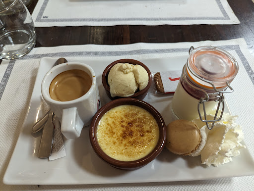First time here. The town was busy after an event, outside was full our reserved but plenty of seating inside. Despite being busy there were plenty of staff and they were friendly and efficient. We had a large veggie pizza and fries to share ( should have sized down on the pizza) we had the cafe gourmand for dessert. I had a blonde beer pression (Atlantic). Everything really good, nice atmosphere, toilets were excellent and clean. Easy to pay at the bar. Will...
