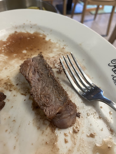 Accueil, service et cuisine correct. La serveuse est toute seule elle fait ce qu’elle peut. Son collègue en cuisine est contraint de venir l’aider car forcément, à deux pour un service le midi avec plusieurs dizaines de couverts c’est pas facile. Après sur le concept c’est un peu particulier. Les viandes arrivent toutes ensembles dans un plat commun, sans précision sur les cuissons, aucun repère n’est placé dessus. Les plats sont posés sur des bougies chauffe plat mais qui ne servent à rien : on se sert la viande, on la regarde pas posée dans son assiette ! Celle-ci est correct mais pas non plus extraordinaire, et on a testé bœuf et canard (ce dernier était même un peu dur). Les cuissons sont plutôt respectées. Les saladiers ne sont pas adaptés à être posés sur les bougies donc on ne peut pas laisser les frites au chaud. Les frites sont à volonté mais pas la salade, pourtant servie dans un saladier commun comme les frites. C’est un peu radin et dur à avaler... Pas de chocolat ou la moindre douceur avec le café. Tout pourrait être pas mal mais ça manque de générosité et...