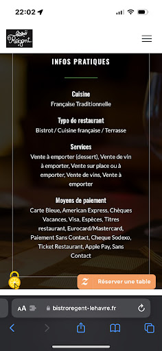 Attention aux indications mensongères du site web. Cet établissement ne prend pas les Chèques Vacances ANCV. Le pire : le responsable sur place fait preuve de mauvaise foi, de quoi altérer largement la qualité du moment passé. Cela en dit long sur les qualités de l’établissement et l’importance accordée aux clients-consommateurs.
