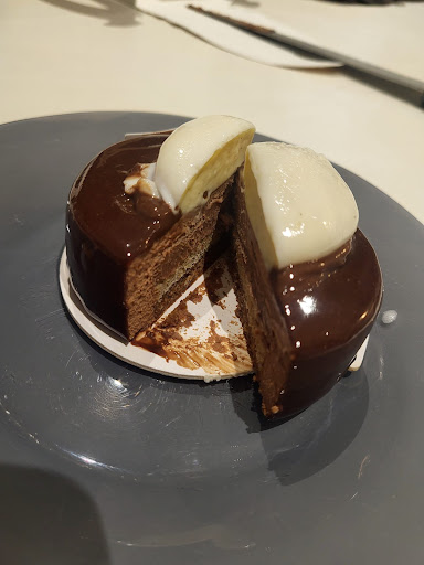 Bon alors pour ma part pas eu de soucis avec la « patronne » peut-être parce que je suis beau gosse alors ? ( on a le droit de rêver hein 😬). Pâtissier de métier et de passage, j’ai trouver la vitrine très joliment décorée inserts, glaçage, mais … Où est le goût , deux entremets plus tard ? Un à la vanille pécan dont je n’ai pas senti une once de pécan du début à la fin sauf celle posée sur le dessus 😅. Texture de la mousse quelconque et sans goût . De l’autre côté , un entremet noisette , la mousse chocolat pâte à bombe était bien en texture , un peu trop sucré à mon goût mais pareil : où est la noisette ? Plus beau que bon donc , le goût m’a échappé …🤷🏻♂️ Ah aussi 15 chouquettes molles , prises à 18 h , cuites sûrement le matin..? Il faut un peu plus sécher/ cuire vos choux cher monsieur , le pochage très régulier, sois c’est du grand art, soit du congelé mais au goût je penche pour la deuxième solution car elles en...