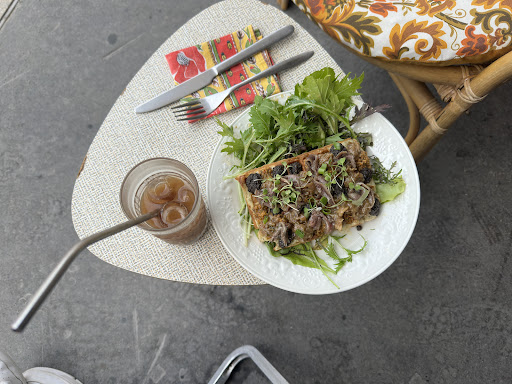 Read moreJe me suis arrêté un Dimanche après-midi pour une collation (une part de gâteau au café et un thé noir). Installée en terrasse sur les tables dehors. J'ai apprécié le service chaleureux et accueillant. La décoration (table, chaise, vaisselle) dépareillée un brin désuète mais charmante, ce qui donne au lieu un style certain et un côté particulièrement accueillant. La pâtisserie était délicieuse et originale et fait rare : peu sucrée. En discutant avec la jeune-femme qui m'a servie, elle m'a expliqué que ce lieu propose des ateliers broderie, dessin, tricot, crochet, etc. Les Havrais ont de la chance d'avoir un lieu comme celui-ci. Calice et Mandibule est de plus hyper bien placé, dans le quartier historique Auguste Perret. Parfait pour une pause tranquille. L'équipe...