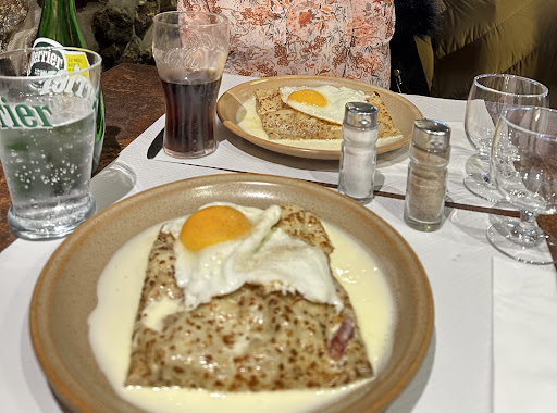 Read moreAlors je cherche une crêperie et je suis tombé sur cette crêperie sur Google quand je suis arrivé sur les lieux, je ne m’attendais pas À cette devanture, mais en descendant les escaliers, j’ai trouvé ce lieu magnifique, atypique, C’était parfait, une crêperie très bonne, le serveur très sympathique, mon tout petit de trois ans n’était pas très sage, mais le serveur a été très compatissant c’est un endroit cosy sympathique, je recommande tout à fait et les crêpes sont excellentes , il y a un menu à 14 € qui est bien je trouve et les prix des crêpes ne sont pas trop cher. Donc ça va, Je reviendrai. Merci à vous c’était trop génial et très bon je...