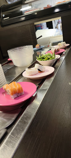 Comment dire, en voyant certains commentaires, je me dis que nous n'avons pas dû manger au même endroit. Testé dans la semaine en livraison, plutôt satisfait, un riz vinaigré superbement bon. (Contrairement à 4jours après, sur place, riz vinaigré absolument fade. En vrai on aurait cru un riz nature avec trois graines dessus) Bref ayant été satisfait de la commande en livraison, nous avons été curieux de tester sur place. Alors le concept de tapis roulant peut être intéressant, j'appréhendais pour l'hygiène. Car tables collées au tapis faisant défiler les plats. Les plats froids tels makis, sashimis, et autre sont couverts d'une petite cloche. Mais de ce fait cela surprend lorsque des plats froids passent sans cloche. Allez savoir si quelqu'un, n'a pas voulu voir le plat de trop près et le repose après. Les plats chauds ne sont pas maintenus au chaud , ni sous cloche(certainement pour éviter la condensation), mais de ce fait hygiène moyenne et qualité moindre. Lorsque des kyoza ou autres brochettes passent pour la quatrième fois, de ce fait elles seront froides à la dégustation. Alors concernant la quantité je pense qu'il serait judicieux de maintenir les bons dosages même si c'est à volonté, des California maki noyés de riz. Une boule de neige avec un micro bout d'avocat et saumon. Voir photo... Pour 25€ à volonté(que pour plat, pas desserts), peut être faut t-il y aller en tout début de service... Pour nous il était 19h45, et le tapis à fait défiler tout au long de notre heure de repas trois plats censé être chauds incessamment. Dont l'un a été pris par un courageux lorsque nous avions terminé. Terminé, car par le choix limité de plats qui défilent ainsi que le non réassort du tapis. Vous abandonnez et partez. L'économie est clairement privilégiée pour ce concept, beaucoup trop de riz pour sushi ou autre, des micros bout de poisson pour dans les makis, des sashimis miniaturisés.... Certains aimerons, d'autres fuirons. Est-ce plutôt une chaîne de restaurants qui privilégie la livraison à emporter ?... Certainement. Bon...