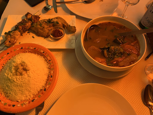 Une bien mauvaise expérience. Nous étions trois. Deux couscous, royal et merguez, très corrects mais c’est le troisième plat qui a posé problème. Nous avons commandé un tajine aux légumes avec quelques fruits en supplément. Celui-ci est arrivé avec de l’agneau et sans fruit : cela arrive, le plat a été renvoyé. Le seconde tajine est arrivé DIX minutes plus tard, alors que les autres plats étaient déjà servis depuis un moment. Nous étions déjà presque au milieu de notre repas. Cette fois-ci, plus de viande mais 4 morceaux de fruits, léger. Mais ce qui nous a surtout interpellé, c’est que la sauce était, littéralement, en ébullition, loin de la cuisson à feu doux demandée par ce genre de mets. Forcément, le goût en a été fortement altéré. Un goût trompeusement épicé, un goût de trop cuit, un goût de pas bon. Le plat n’a donc pas été mangé. Nous en avons informé la serveuse. Celle-ci, le regrettant, n’a apporté aucune solution. Au moment de régler l’addition, nous espérions plus de considération de la personne qui nous a encaissé. Celle-ci, malgré ses « regrets », n’a aucunement pris en compte nos remarques, prétextant que ça n’arrive jamais et qu’il n’y pouvait rien. Et bien si, justement : un peu plus de considération, et peut-être même un geste commercial, auraient été...