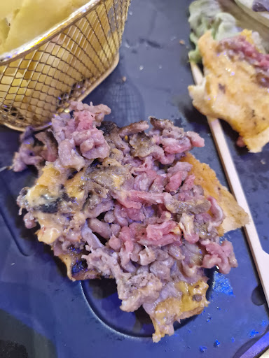 the burger meat had a burnt aftertaste on the outside as if the grill hadn't been cleaned, the service was awful, you can't go wrong, we got one burger that tasted burnt on the outside and was raw inside and we didn't want to pay for it and the waiter made a problem that it was bitten so we had to pay and claimed that the meat was okay, but it looked like tripe inside, he shouted at us in French even though we said 20 times that we wanted it in English, at the very beginning instead of serving cutlery nicely he threw them around practically, from the very beginning I had a view of the kitchen where there was a huge mess as if they never cleaned it and by the sink where there was a pile of dishes there was a huge open garbage bag, when we entered he started talking to my friend in a very unpleasant way and raising his voice, the table was dirty with grease in one place and there was a lot of salt scattered on it and the waiter himself seated us there, generally a terribly unpleasant situation I was wondering whether to call the sanitary inspection and only when we threatened the police they agreed that we do not have...