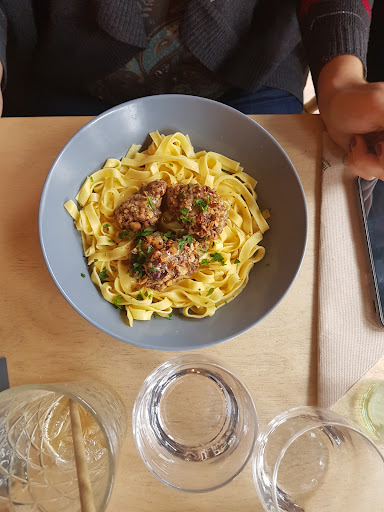 Les 5* seront pour plus tard peut-ĂȘtre. On se contente d'attribuer 4*, ce qui est dĂ©jĂ bien. Ce restaurant / brasserie gagne des points en matiĂšre de dĂ©coration, ses choix Ă©thiques (pas de pailles en plastique ! hourra !) mais aussi et surtout, pour sa carte. Une nouvelle carte chaque semaine avec des produits frais, de saisons et locaux. Une bonne cuisine (avec un goĂ»t de trop peu parfois). Choix vĂ©gĂ©tarien mais hĂ©las... pas de choix vĂ©gĂ©talien. Premier problĂšme. Ce qui nous a Ă©galement dĂ©rangĂ©, faute Ă pas de chance : c'est notre positionnement dans la salle. Juste Ă cĂŽtĂ© de la porte automatique. Autant vous dire qu'en Hiver quand chacun rentre et sort n'importe comment : les courants d'airs viendront vous glacer le dos pendant le repas. Mais, je pense que ce point sera amĂ©liorĂ© Ă l'avenir. En tous cas je l'espĂšre car le froid extĂ©rieur peut gĂącher un repas.