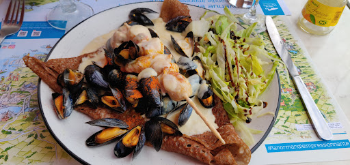 Read moreLe choix entre 4 étoiles et 5 a était difficile ! Voici pourquoi. Un sans faute pour la galette Cabestan que je recommande fortement. C est une galette avec une brochette de St Jacques et un lit de moule. Petites moules très gouteuses, et St Jacques cuit parfaitement mais le délice dans tout ça et la sauce à la Bénédictine. Celle ci a vraiment le goût de Bénédictine, elle est bien présente, de plus le plat est saupoudré de safran qui donne beaucoup de dimension au plat. J ai également pris un cocktail, le Bénédictin : Bénédictine, crème de cassis, cidre une turie. Il m a fait tout le repas car assez costaud. La Bénédictine est une fois encore se sens très bien. Par contre, la crêpe yportoise avec pommes caramélisées et Bénédictine était ok, sans plus. A mon goût les pommes n étaient pas vraiment caramélisées mais plutôt cuite. La proposition d une carafe d eau aurait été appréciée. En tout cas je reviendrai pour la cabestan et le cocktail. Merci beaucoup...