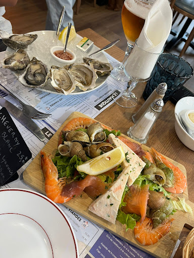 We ordered the herring salad and the seafood platter (Bord de Mer). Everything was super fresh and incredibly tasty. Honestly, Iâve never had herring so mild, tender, and flavorful â worlds apart from the pickled stuff we are used from home. The seafood â shrimp, snails, oysters â was just perfect. The platter was generous enough that my partner got to sneak a few bites too - with my blessing⊠mostly ;)