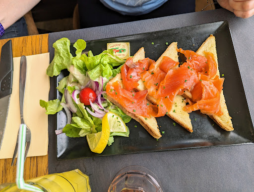 On y a dîner en pleine un jeudi soir avec mes enfants. Oui c’est plus cher qu’un burger au McDo, mais franchement ça vaut le coup. Menu enfant 12 euros. On a pris un jambon frite pour l’une d’elle jambon sans gras niquel. Pizza pour un autre Niquel il s’est régalé aussi sans parler de la plus grande qui dans le menu enfant a trouvé des moules était ravie. Sirop à l’eau et glace « style à l’italienne » ils ont tout fini sauf la salade du jambon frite évidemment, sirop à l’eau compris ( soyons sincère ça reste plus sain qu’un coca ) pour ma part salade de chèvre chaud ( sauce un peu forte en moutarde je crois mais c’est que je suis sensible aussi, je l’ai mangé quand même ça a raviver mon palais lol) et pour une fois des frais rond de chèvre entier. J’ai demandé sans lardons ( je ne mange pas de viande) ça n’a pas posé de souci.