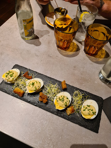 Read moreRepas d’un samedi soir, arrivée sans réservation nous avons eu la chance d’avoir quand même une place rapidement. Au premier abord, le restaurant est très sympa, une déco particulière qui change de ce que l’on voit habituellement en bord de mer. Ici nous avons pris un menu, et un plat à la carte avec une bouteille de vin. Le vin était excellent, un peu cher la demi mais on paye la qualité. L’entrée, un foie gras « maison » pas trop mal. Les plats, des St Jacques à la crème d’Isigny, très bon, mais les St Jacques avec croustillant goût sable.. On évitera. L’autre, un camembert rôti, qui a été une grosse déception. Sur la carte : « camembert rôti, jambon italien, mesclun et frites maison.. Le camembert est en fait « fourré » au jambon, ce qui le rends sec et extrêmement salé, pas du tout ce que l’on attends.. Le mesclun, je l’attends toujours, et quant aux frites, elles sont bonnes. En dessert, un café gourmand.. Pas vraiment gourmand. Les desserts proposés ont l’air bon, mais la crème brûlée n’a aucun goût (cela fait très industriel) le riz au lait ne casse pas le plafond (peu de riz, beaucoup de lait) la « crème chocolat » ressemble à une danette très lourde, et la crème vanille avec framboises était excellente (1 dessert sur 4..) quant au café.. beaucoup d’eau 😅 Vient ensuite le moment du paiement, beaucoup d’erreur, le vin compté à 35€ au lieu de 21€, peu de dialogue entre les deux serveurs et du coup, nous avons du tout rectifié. Et coup de pas de bol, le TPE a CB ne fonctionne pas, obligé d’aller retirer de l’espèce, et pompom.. Pas d’excuses, rien. Je me permet même de dire ce qui n’a pas été, et rien. On s’en fou, tu manges, tu payes, tu te casses. Très déçu en réalité, nous ne réessayerons pas, c’est clair. D’autres resto valent bien plus la visite dans le coin ! C’est dommage, le resto mérite une...