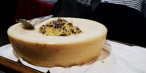 It was a very dissapointing experience. We went there for the iconic grana padana wheel pasta, but it turned out to be very dissaponting. 26 euros for dry pasta, with bare minimum cheese. On asking for more cheese the staff just dumped grated parmigiano on top of our pasta. The desserts too were sadly very basic. The tiramisu was okay, and the creme bruléé was served cold.
