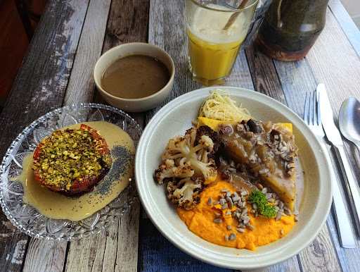 Read moreJ'ai eu le plaisir de dĂ©couvrir un restaurant vĂ©gane qui m'a totalement sĂ©duit. L'atmosphĂšre chaleureuse et conviviale m'a fait me sentir instantanĂ©ment Ă l'aise, comme si j'Ă©tais chez des amis. Ce qui m'a vĂ©ritablement impressionnĂ©, c'est la qualitĂ© de la cuisine. Les plats Ă©taient d'une finesse et d'une crĂ©ativitĂ© exceptionnelles, avec des Ă©quilibres gustatifs parfaits. Ce restaurant vĂ©gane n'a rien Ă envier aux restaurants conventionnels, il rivalise avec brio en termes de saveurs et de prĂ©sentation. De plus, la dĂ©coration simple et ludique a ajoutĂ© une touche de charme Ă l'expĂ©rience culinaire. Si vous ĂȘtes Ă la recherche d'un restaurant vĂ©gane oĂč vous pourrez savourer une cuisine exquise dans une ambiance conviviale, ne cherchez plus, cet endroit est une pĂ©pite. Je le recommande vivement Ă tous, mĂȘme aux amateurs de cuisine non vĂ©gĂ©talienne. Vous ne...