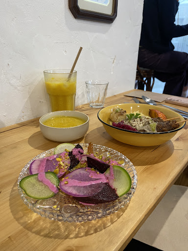 Read moreJ'ai eu le plaisir de découvrir un restaurant végane qui m'a totalement séduit. L'atmosphère chaleureuse et conviviale m'a fait me sentir instantanément à l'aise, comme si j'étais chez des amis. Ce qui m'a véritablement impressionné, c'est la qualité de la cuisine. Les plats étaient d'une finesse et d'une créativité exceptionnelles, avec des équilibres gustatifs parfaits. Ce restaurant végane n'a rien à envier aux restaurants conventionnels, il rivalise avec brio en termes de saveurs et de présentation. De plus, la décoration simple et ludique a ajouté une touche de charme à l'expérience culinaire. Si vous êtes à la recherche d'un restaurant végane où vous pourrez savourer une cuisine exquise dans une ambiance conviviale, ne cherchez plus, cet endroit est une pépite. Je le recommande vivement à tous, même aux amateurs de cuisine non végétalienne. Vous ne...